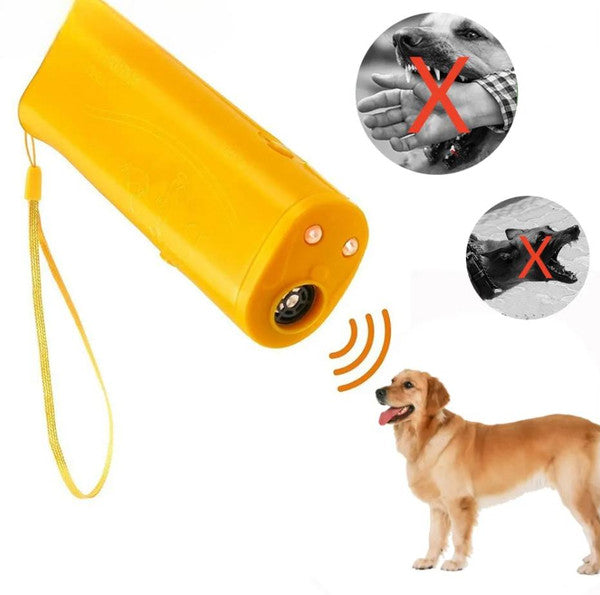 A compact, lightweight ultrasonic device with a powerful LED flashlight. Perfect for walking your dog safely in the morning or at night. Also features various functions to keep other dogs away during your walks.