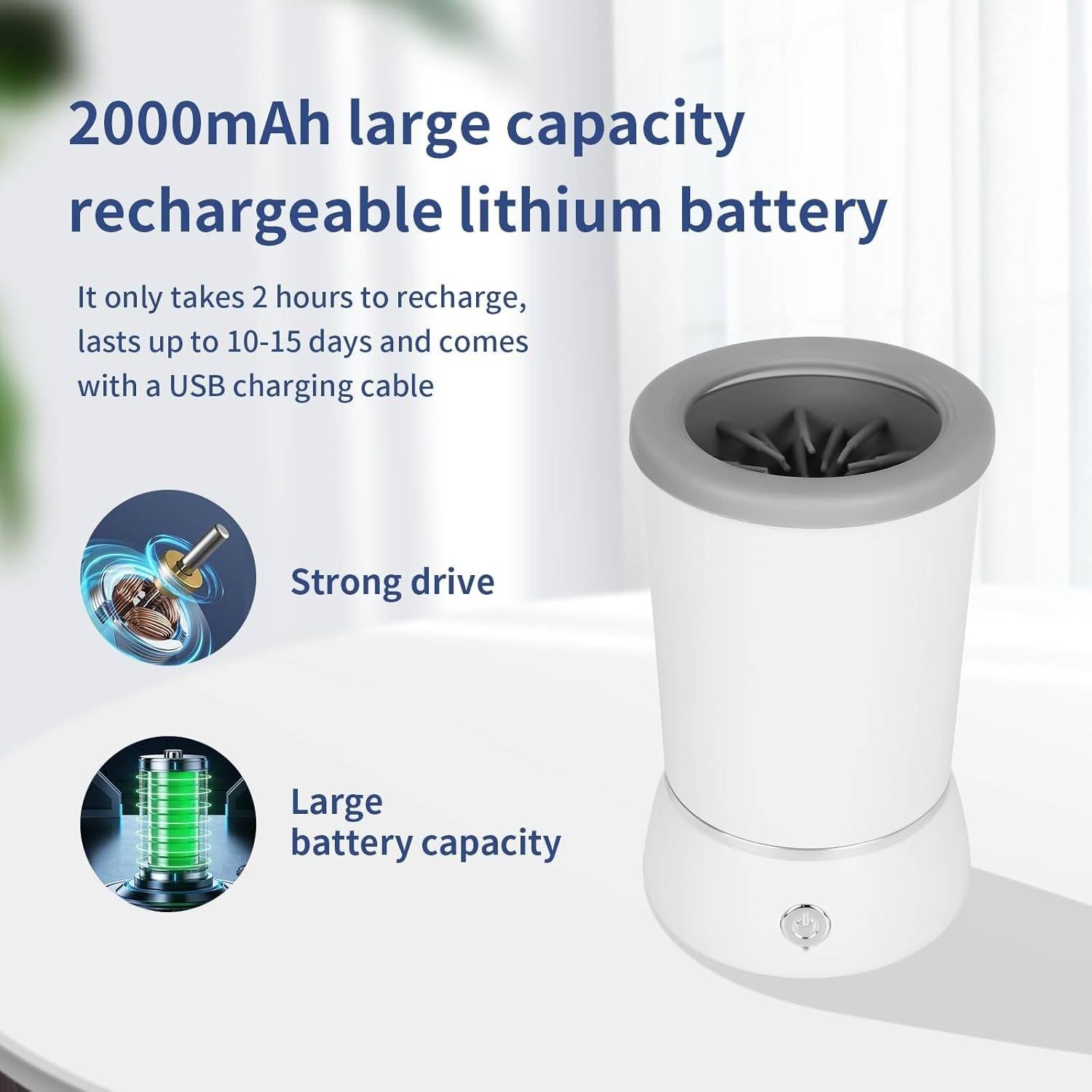 The long lasting 2000mAh battery delivers twelve days of cleaning power from one charge. Food grade silicone bristles safely clean paws up to 5cm diameter. Two adjustable speeds customize the experience for different sized pets.