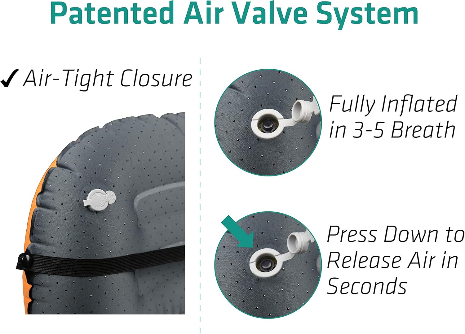 QUICK INFLATION: Inflates to full size with 3-5 breaths, providing instant comfort for head or lumbar support.