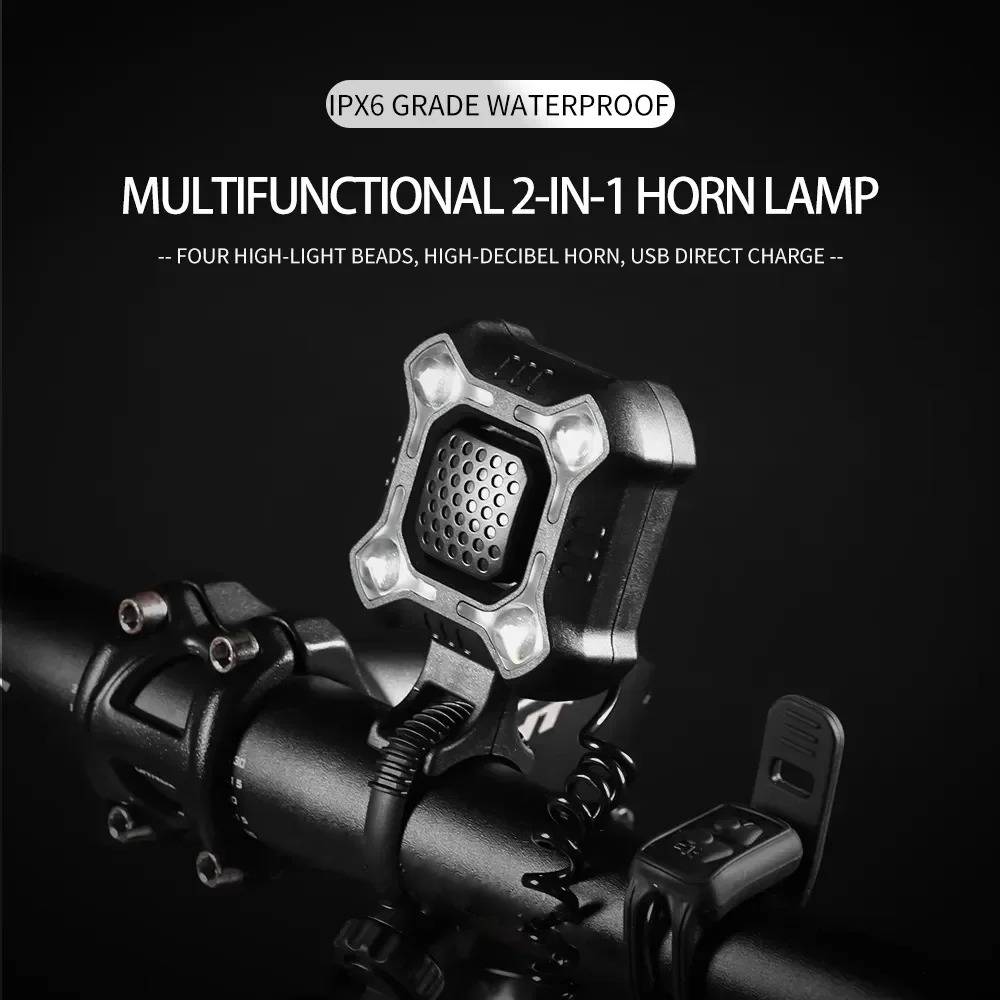 The system features two independent control buttons for instant operation. The electronic speaker delivers five distinct sound patterns through its amplified system, matching vehicle horn intensity. Meanwhile, four XPE LED beads project powerful flood lighting with five customizable brightness modes.