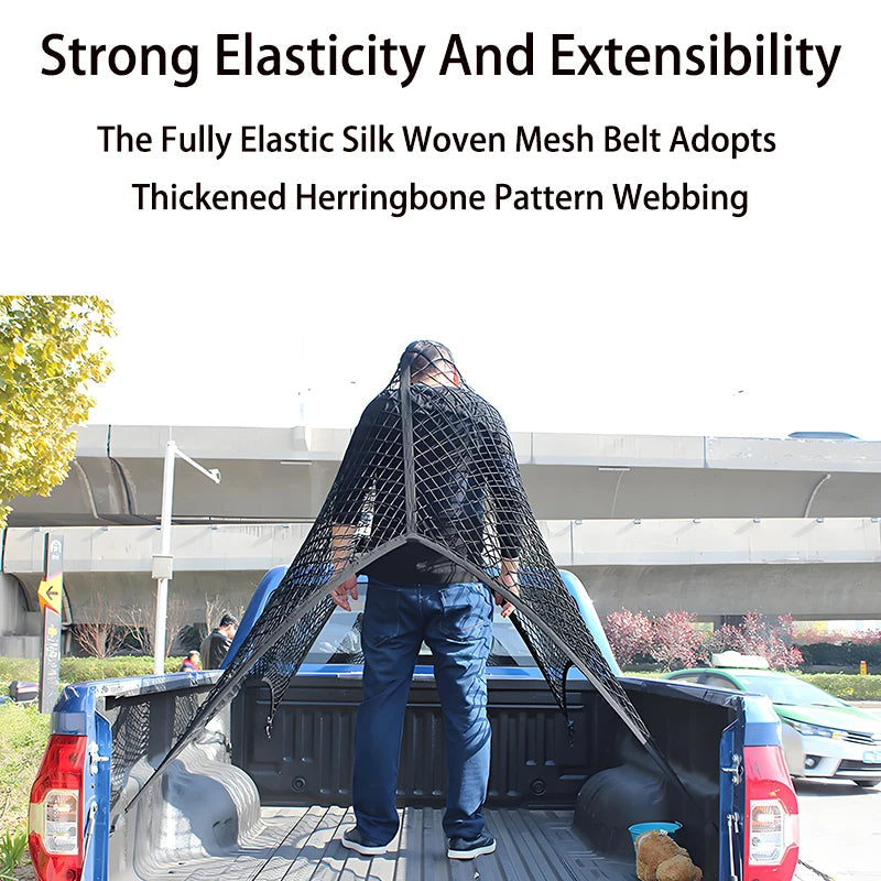 Built with high-elasticity nylon and reinforced edges, our truck bed net provides excellent toughness while resisting wear and tear. Its thickened and encrypted mesh net design guarantees long-term performance, making it ideal for daily use or extended travel. Plus, the spacious design offers ample storage without compromising on space, easily folding away when not in use.