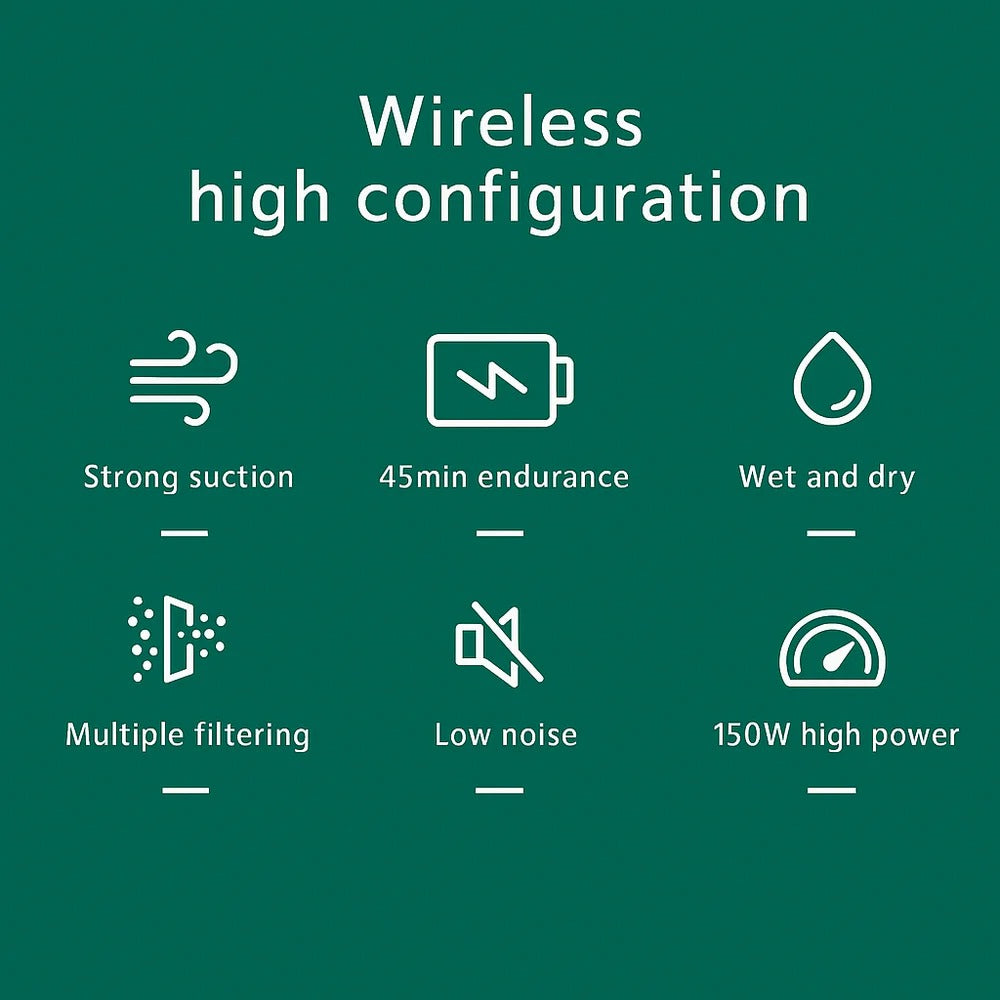 Tackle dirt and debris with ease using this high-performance cordless vacuum. Featuring 95000Pa suction power and a lightweight design, it’s ideal for quick, thorough cleaning in vehicles, around the home, or on the go. Multiple attachments offer flexibility for various surfaces and hard-to-reach areas