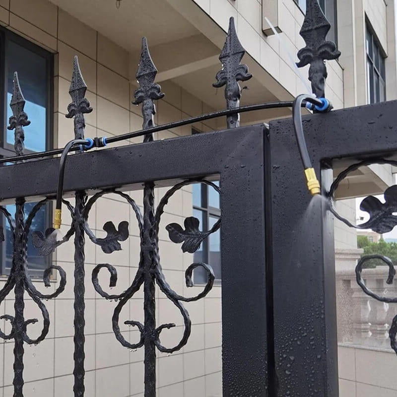 This irrigation kit includes tubing that divides into several channels, distributing water evenly and improving flow pressure. Delivers moisture directly to roots and helps reduce water use by up to 70%. Suitable for flower beds, vegetable plots, potted plants, and cooling during warmer weather.