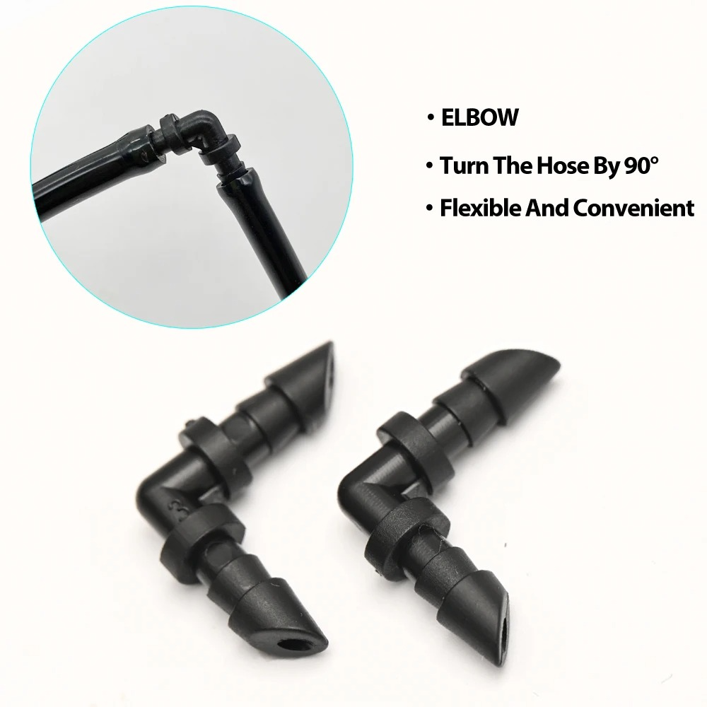 FLEXIBLE ROUTING SYSTEM: Tee joints, elbows, and spike holders allow custom placement for targeted plant watering.