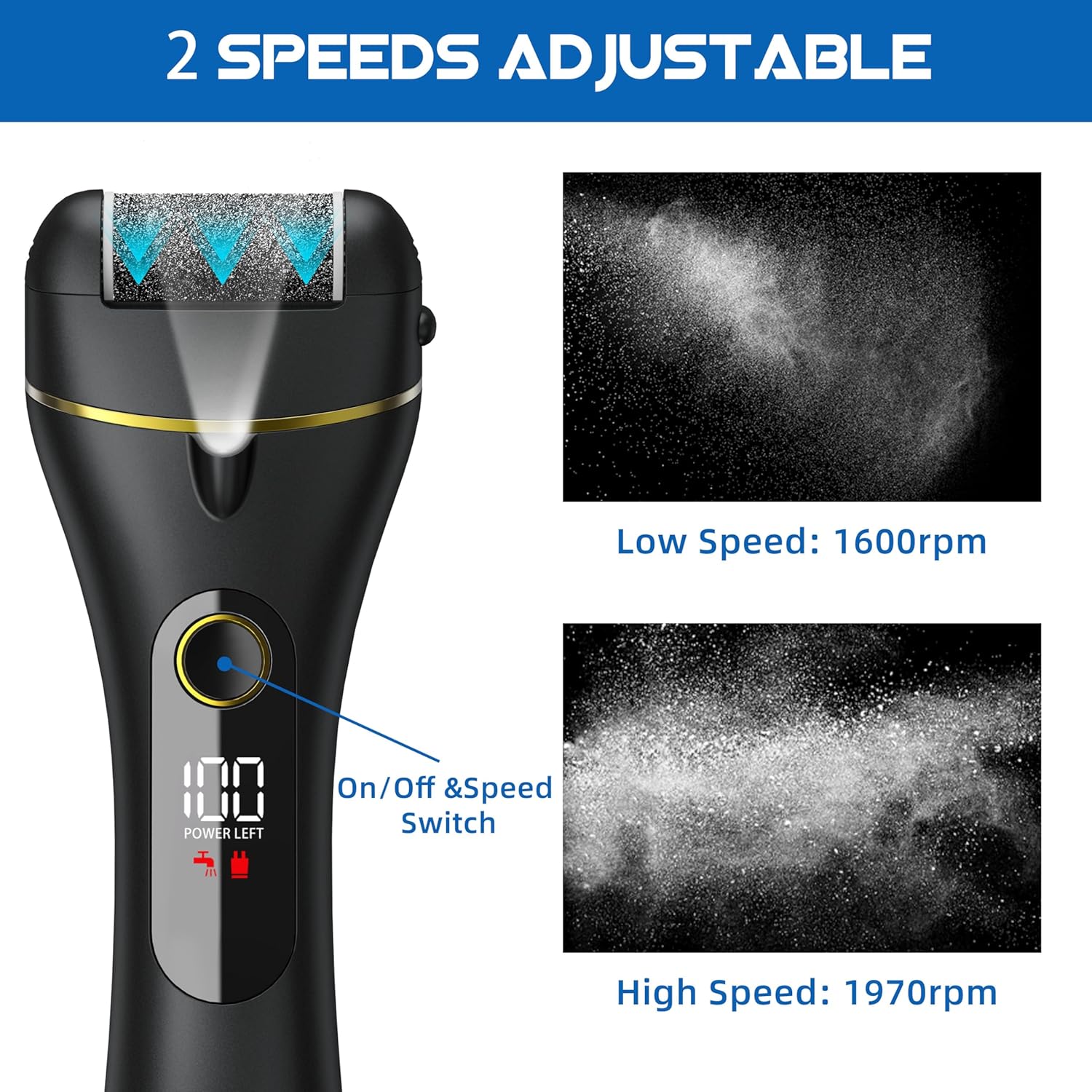 DUAL-SPEED PERFORMANCE: Switch between gentle 1600 RPM for sensitive areas and powerful 1970 RPM for tough calluses with one-button control.