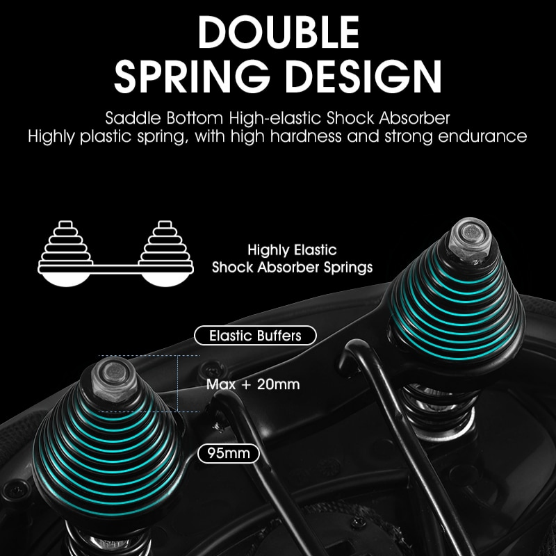 Our oversized bike saddle is wide enough and provides quite a space for your hips to sit well and comfortably; Dual shock-absorbing steel springs offer a smooth, stable ride, even on bumpy or rough roads.