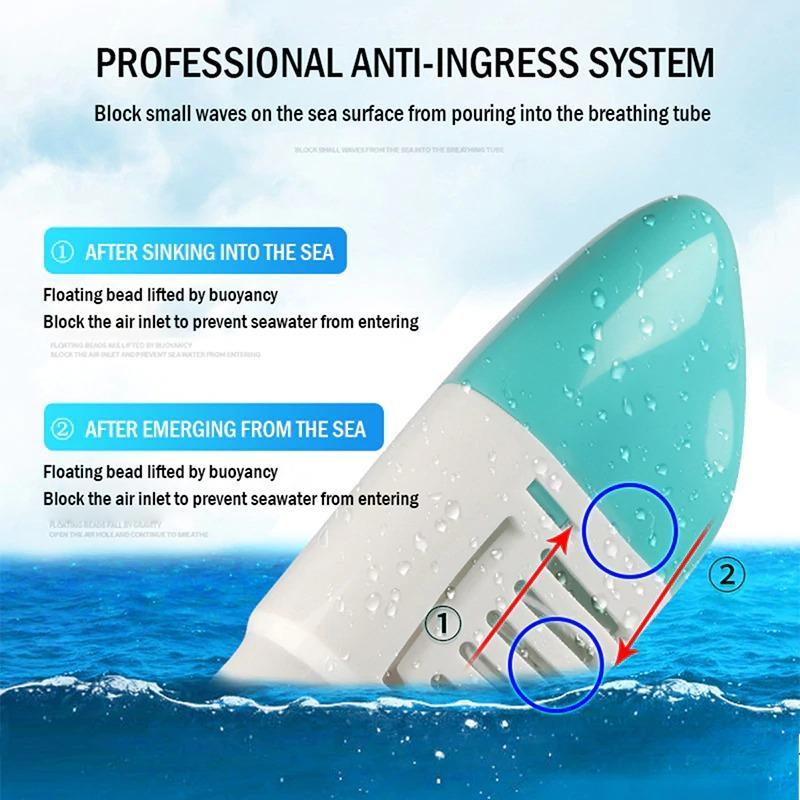 Dry Snorkel Technology: Spend more time snorkeling and less time worrying about water in your mask since the ball at the top of the tube will automatically close the air valve to keep salt water out of your mouth and avoid gagging.