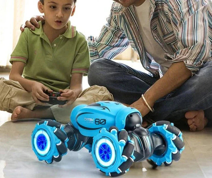 You can easily combine the front, rear, left/right, flip, and high chassis while playback. Better off-road performance and stability are provided by 4WD driving. The RC stunt car is quite robust.