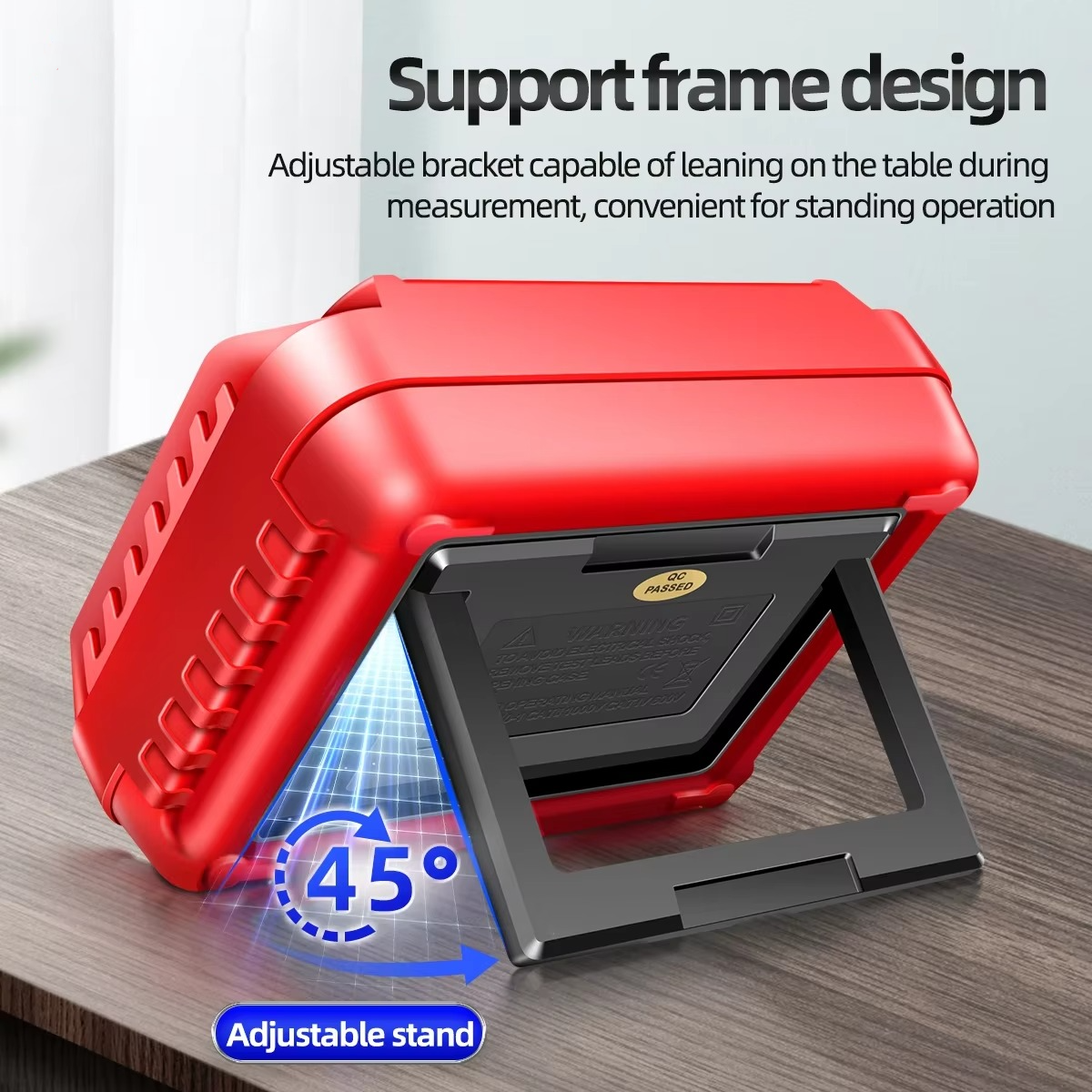 Here's more! The protective silicone case ensures durability in demanding environments. A convenient back bracket enables hands free operation during extended testing. Plus, intelligent power management includes automatic shutdown and battery monitoring.