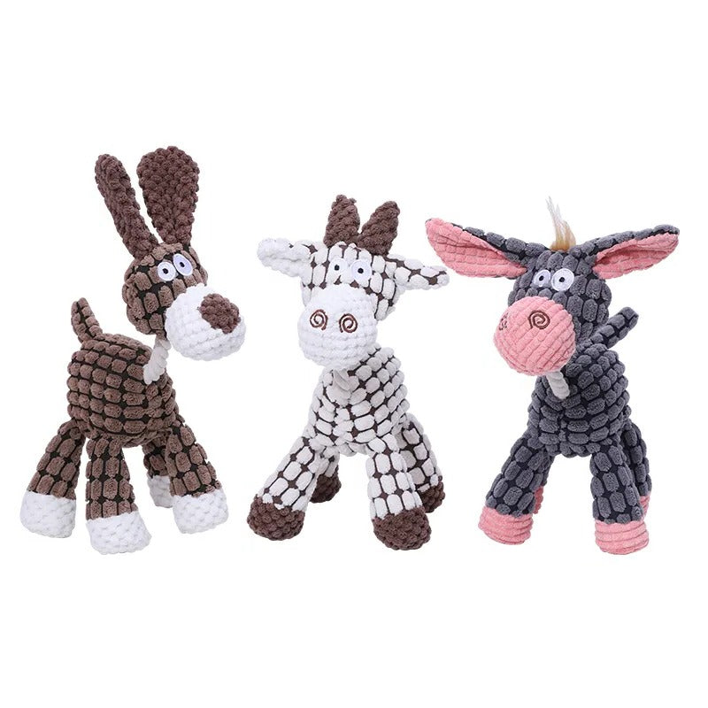 With its integrated squeaker, this plush toy will keep your pet happy and active. By encouraging play and providing mental and physical activity, the distinctive sound will keep your pet content and healthy.