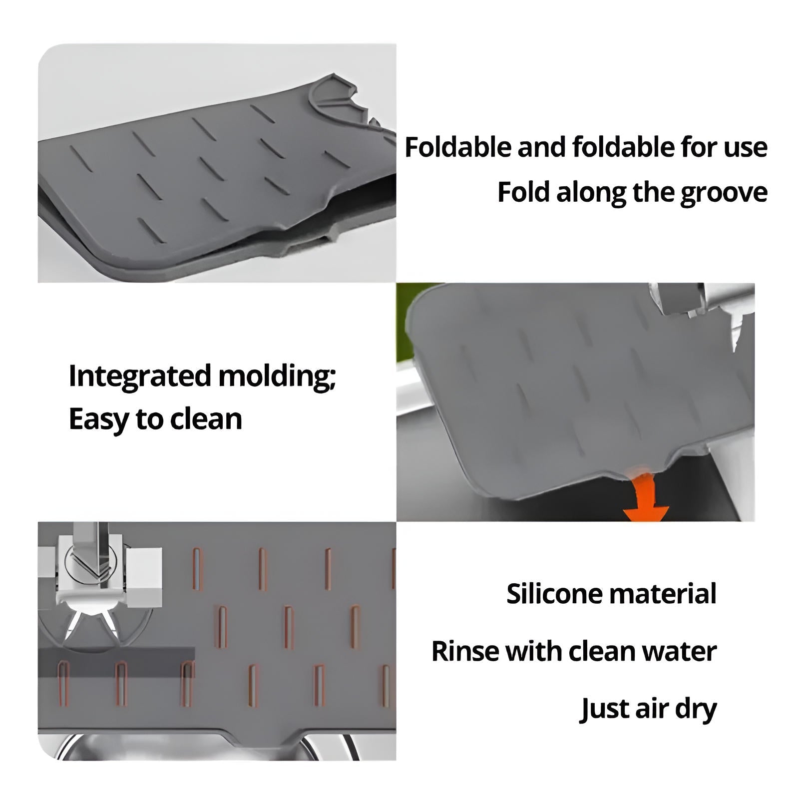 The flexible silicone barrier wraps securely around your faucet base to catch wayward splashes. Smart drainage channels guide water directly back into your sink immediately. The snug fitting design ensures complete protection without any installation tools.