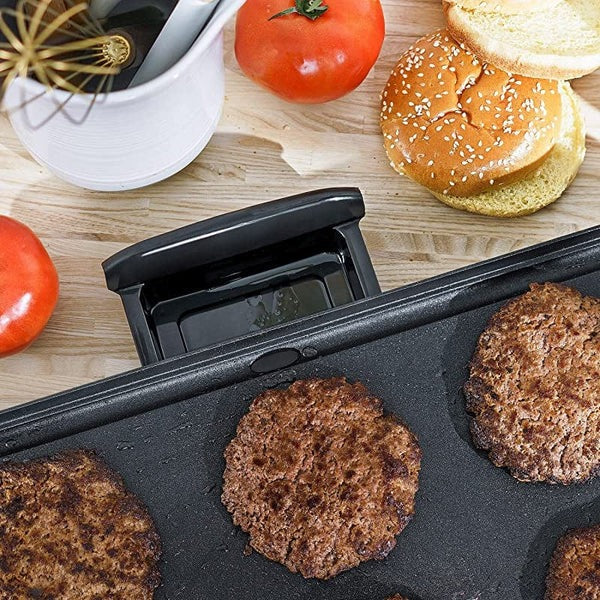Warming Tray: It can get messy and cold when cooked food is transferred to a plate. This pancake skillet conveniently features an integrated heated tray for resting and maintaining food warmth.