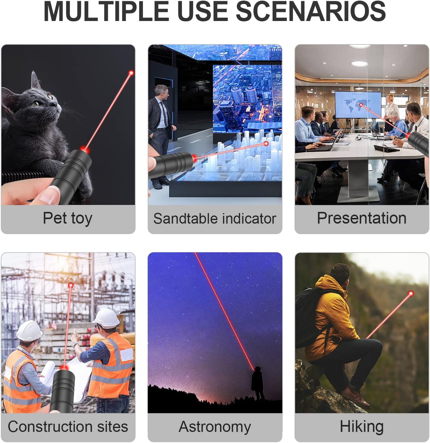 Our laser pointer is super versatile, giving you a cool starry sky effect and a powerful laser for long-range visibility. It’s also a fun toy for pets, making it perfect for both entertainment and practical uses in different situations.
