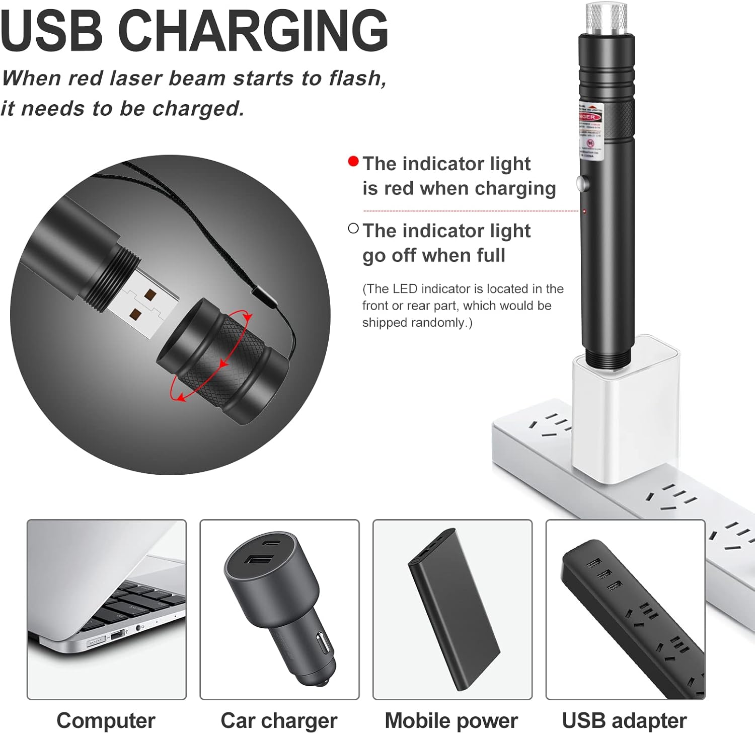 Wait, there’s more. It has a built-in lithium battery and USB-A interface, making charging easy and hassle-free. Designed for safety to avoid accidental laser exposure, it’s perfect for presentations, outdoor adventures, and more. Lightweight and portable, it’s super convenient for on-the-go use.