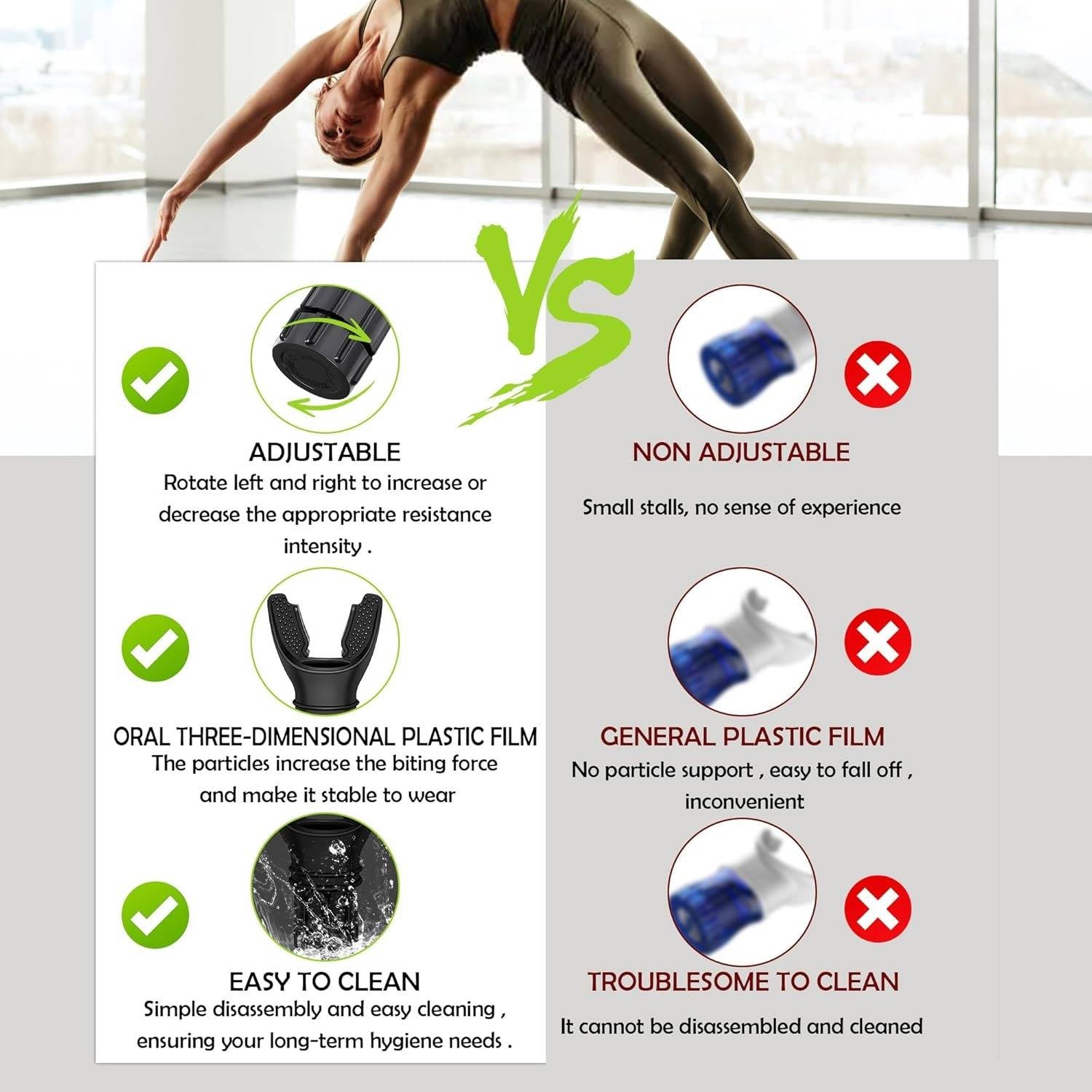 Crafted with medical-grade silicone and premium ABEC-9 bearings for maximum durability. The ergonomic bite design features soft, elastic material that perfectly conforms to your mouth shape. Our anti-slip technology ensures secure positioning during intense movements.