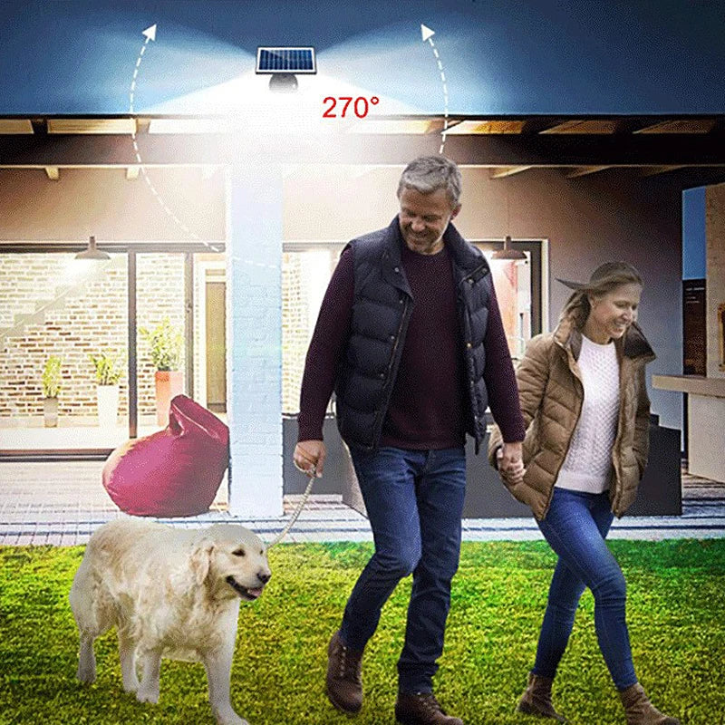 Illuminate your outdoors with this powerful and energy-efficient motion sensor solar light, designed to keep your space safe and well-lit through the night. With 74 ultra-bright LED bulbs and a wide 270-degree lighting angle, this durable light delivers maximum coverage for patios, driveways, gardens, and fences. It harnesses the power of the sun, making it a reliable and eco-friendly lighting solution.