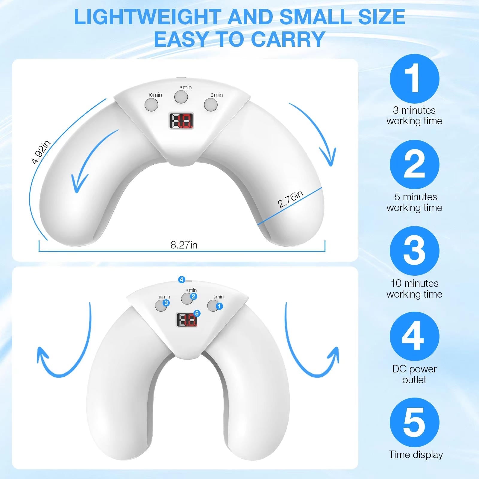 Select your ideal treatment time with convenient 3, 5, or 10 minute options on the digital display. The professional grade 36W system delivers consistent therapeutic power. The treatment is completely painless and safe for all skin types.