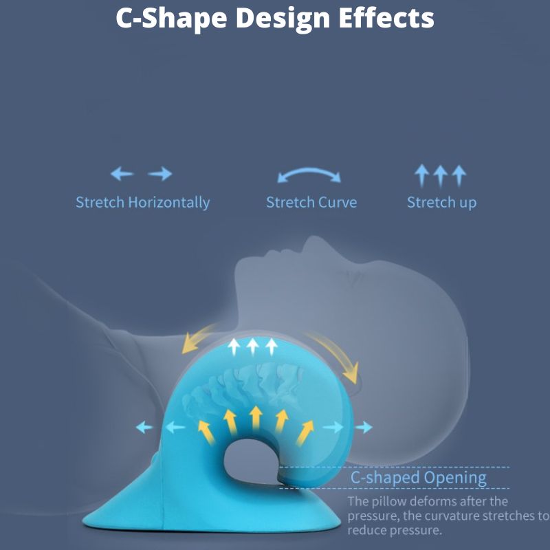 - Locate the neck support of the pillow around the middle of your neck. Start with gentle traction (convex side under your head).