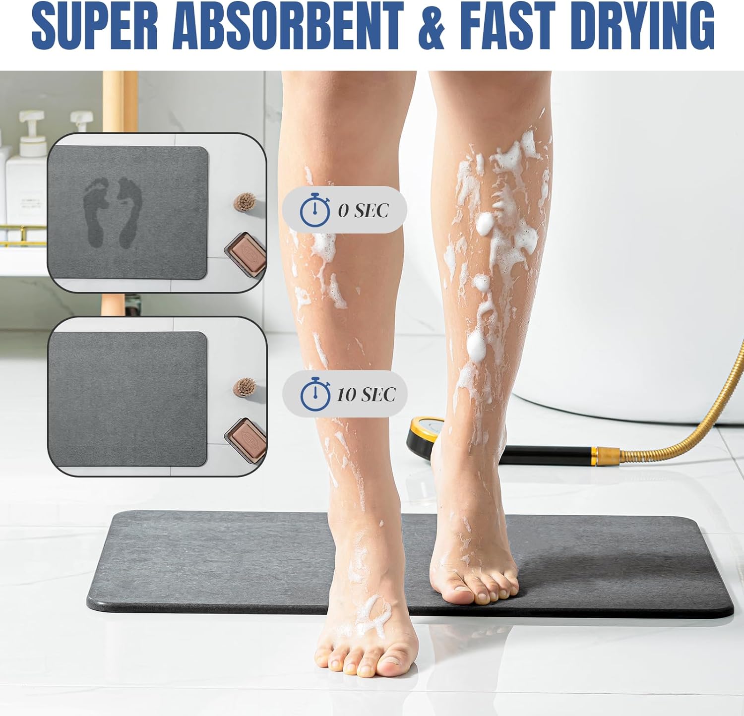 FAST DRYING IN 1 MINUTE: Quickly absorbs water from feet, dries completely within minutes due to its porous surface design.