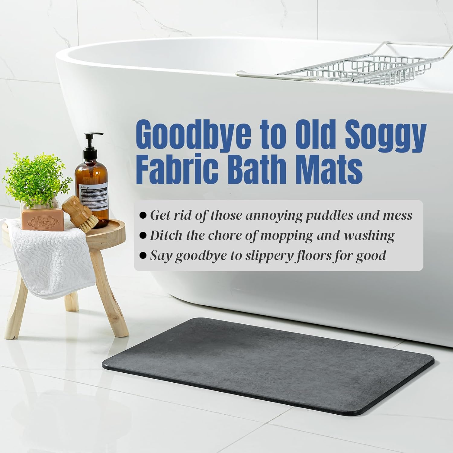 Wait, there’s more. This versatile mat isn't just for the bathroom; you can also use it for draining dishes, holding pet bowls, potted plants, or storing boots and umbrellas. It keeps your place looking modern and stylish. Plus, it’s easy to clean when dirty.