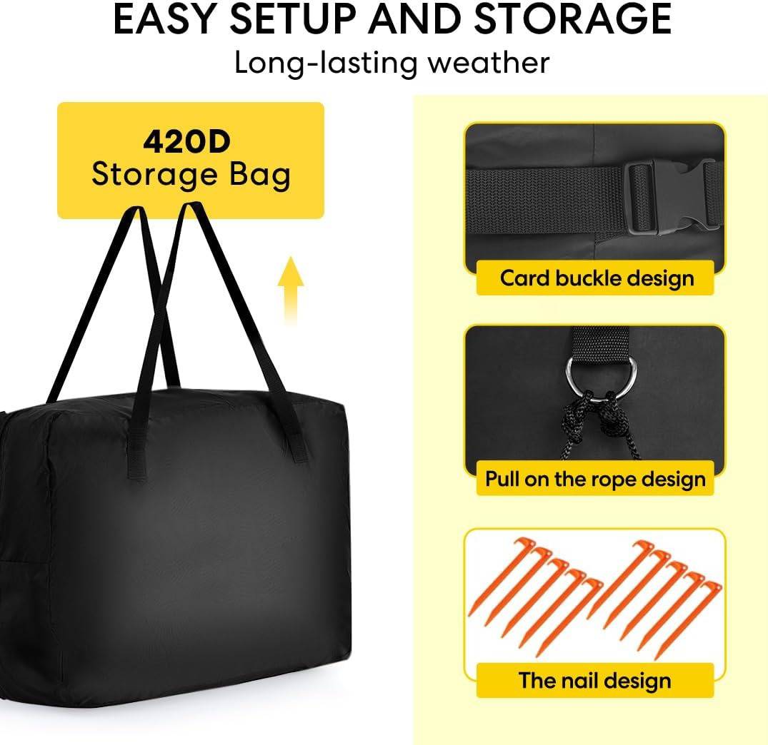 It doesn’t stop! Your complete package includes heavy-duty ground stakes, securing tethers, and a durable 420D Oxford carrying bag for easy transport. Setup takes just minutes anywhere outdoors. Plus, the removable screen surface makes cleanup effortless.