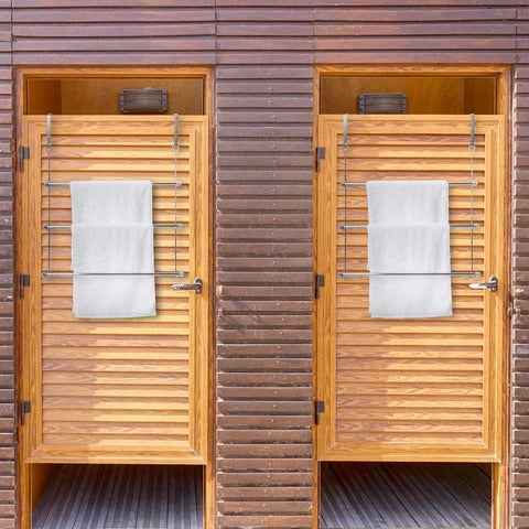 The hand towel rack is ideal for hanging over your door because it has wide, strong hooks to improve the situation. In this manner, you can give your bathroom door a new purpose while also saving much-needed space.