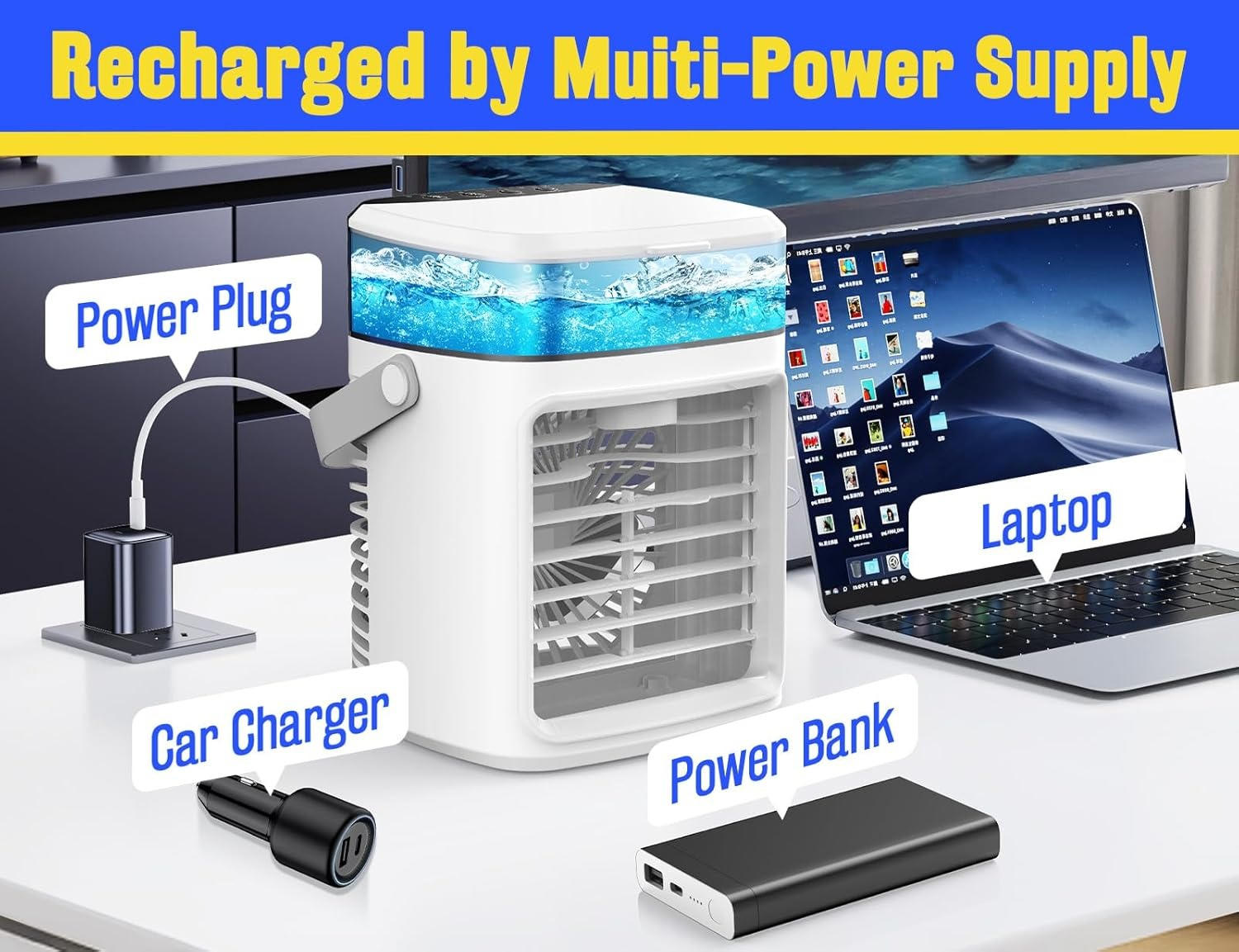 Uncomfortable hot temperatures and dry air disrupt your daily routine and drain your energy. Our Portable Air Cooler Fan delivers instant comfort wherever you go. Experience the perfect blend of cool air, ideal humidity, and soothing aromatherapy.