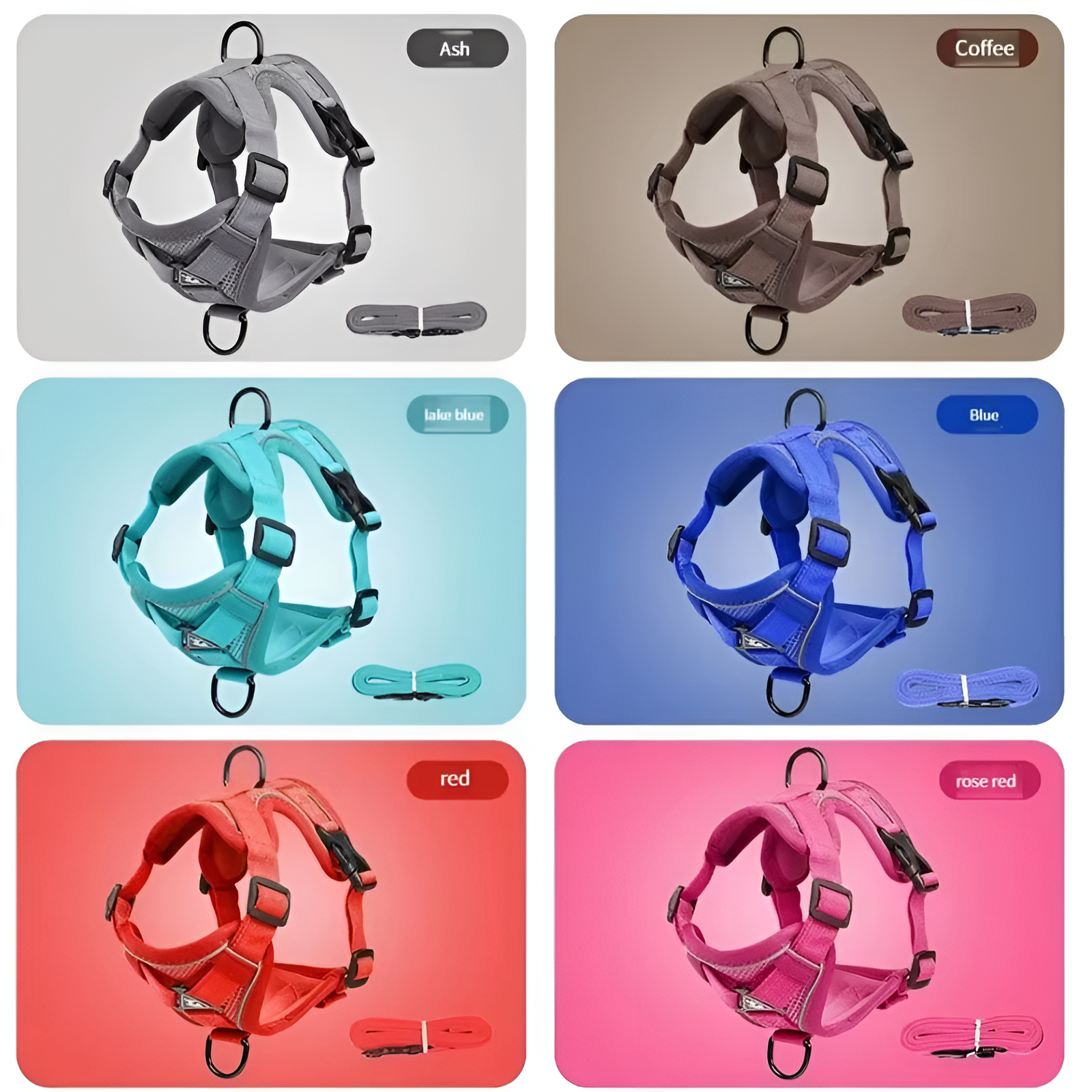 Premium sandwich mesh construction ensures breathability during warm weather activities. The 360 degree reflective strips illuminate your pet during nighttime walks. The ergonomic 1.5 meter leash provides comfortable handling without straining your hands.