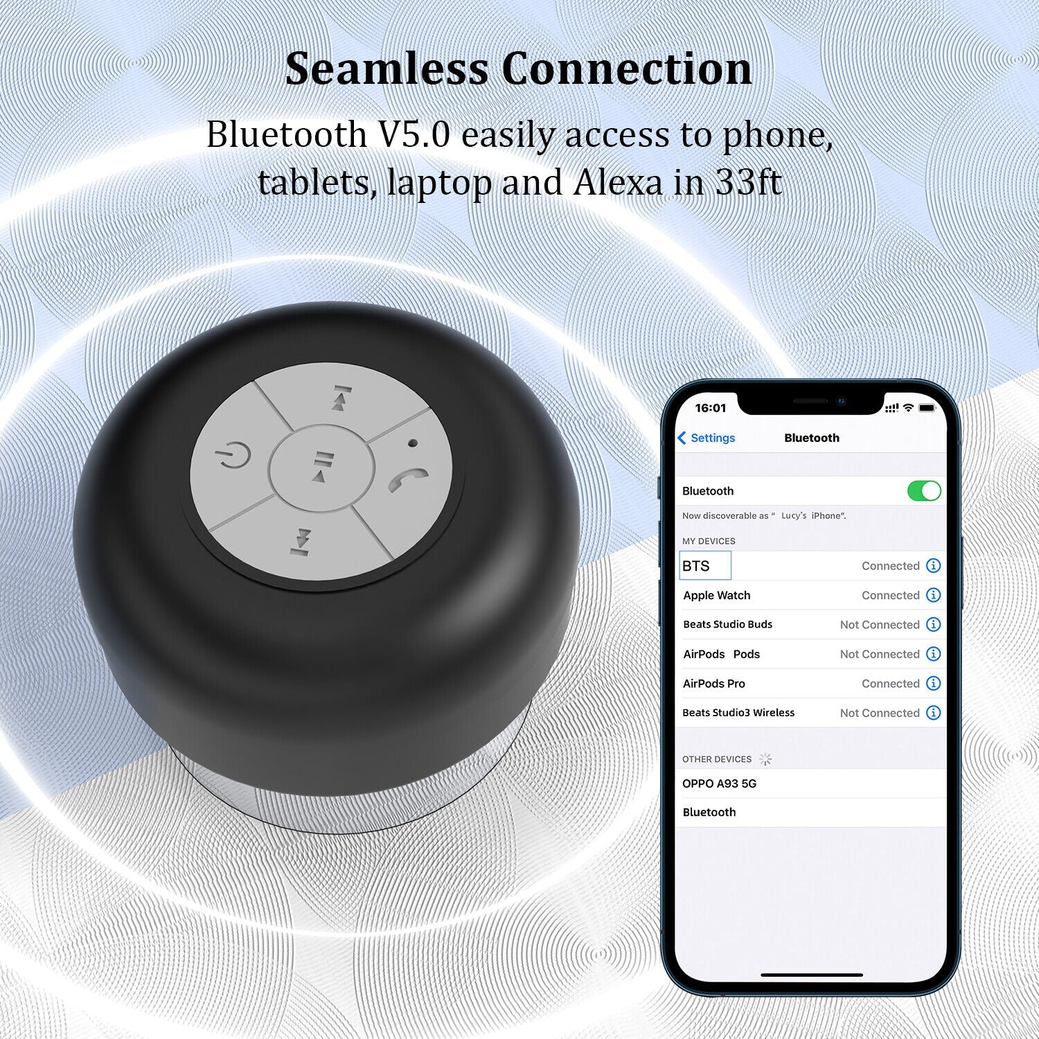 Our Shower Speaker is designed to be user-friendly and easy to install. The device comes with a strong suction cup that firmly attaches to any smooth surface in your shower, making it easy to place and move around. The speaker connects wirelessly to any Bluetooth-enabled device, allowing you to stream music from your smartphone, tablet, or laptop with ease.