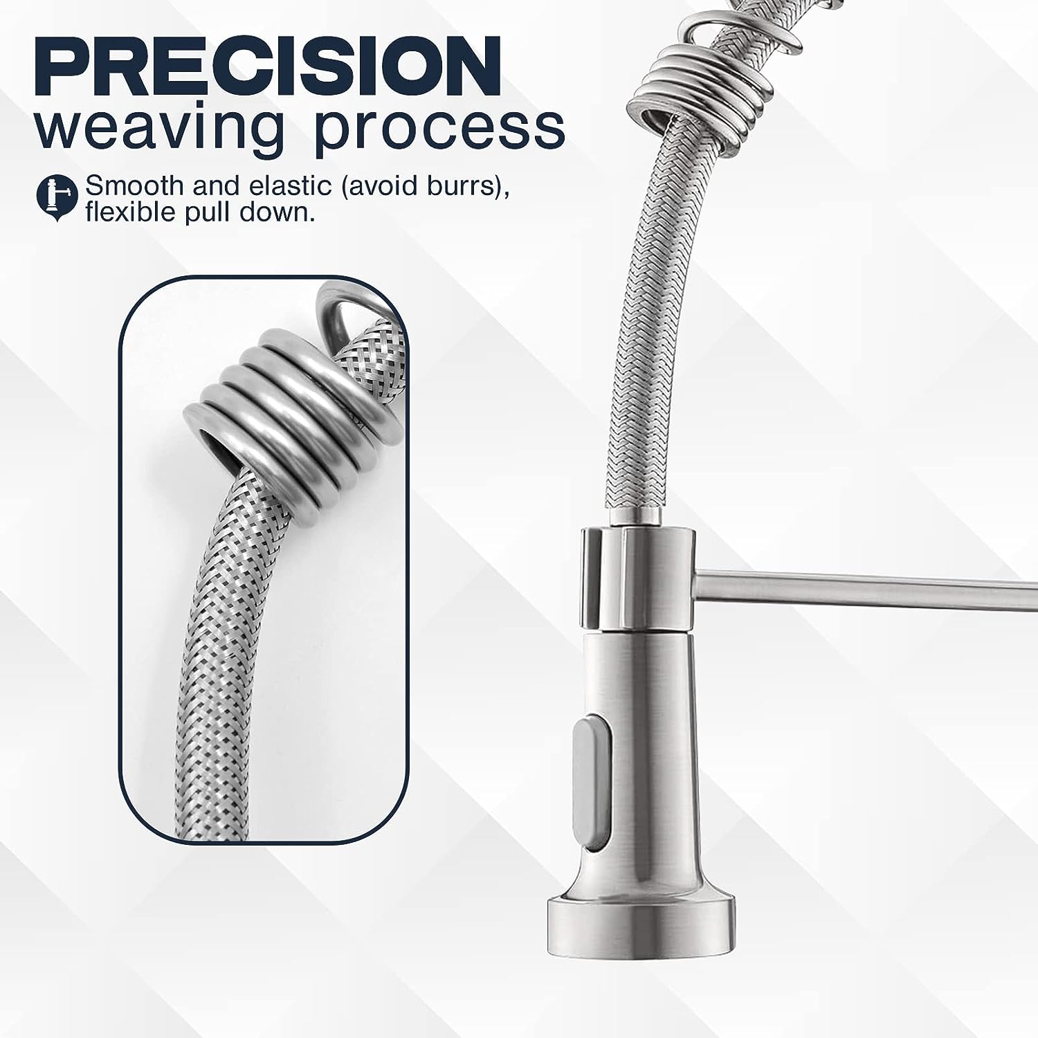 - ROBUST BRAIDED STAINLESS STEEL HOSE: The water pipe is encased in a braided stainless steel cover, significantly extending its lifespan while preventing leaks and bursts. Plus, enjoy the flexibility of a pull-down faucet for added convenience.