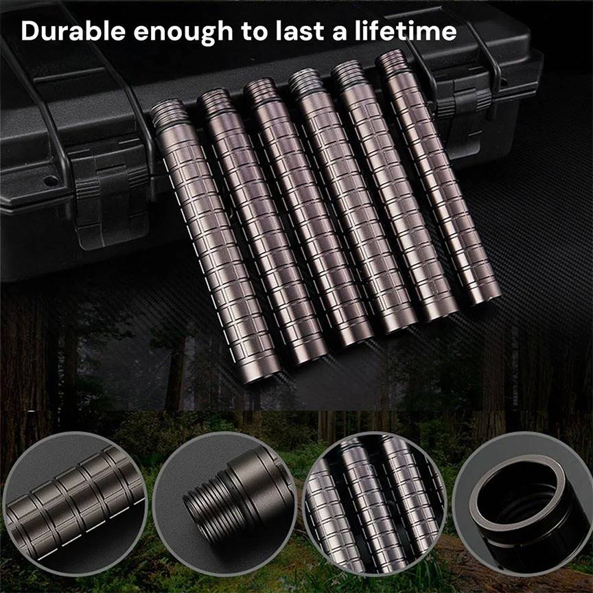 ADVANCED FIRE & UTILITY: Integrated ferro rod, bottle opener, and internal storage tubes for essential survival gear.