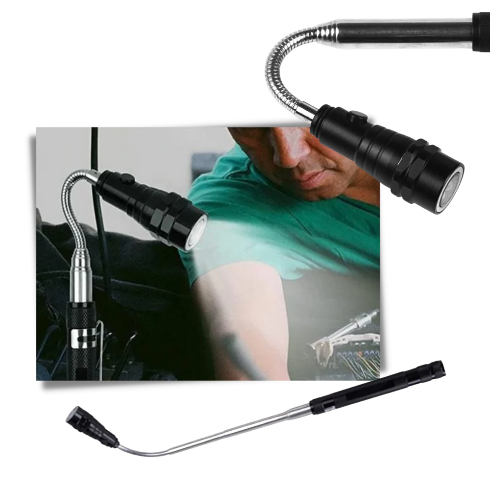 This telescopic magnetic LED flashlight makes it easy to work in tight areas and quickly recover dropped metallic objects.