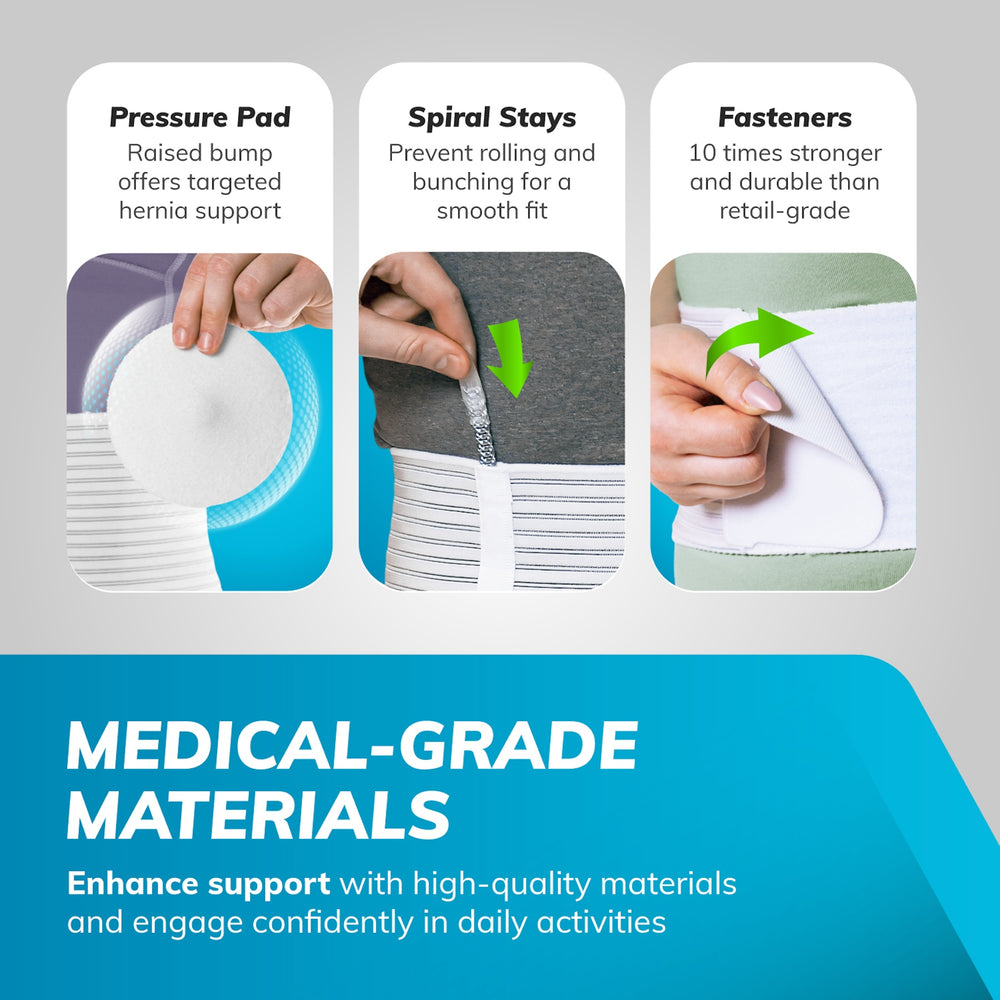 - Your hernia is directly compressed by the pad's form, which helps to keep it contained and stops it from bulging out more.