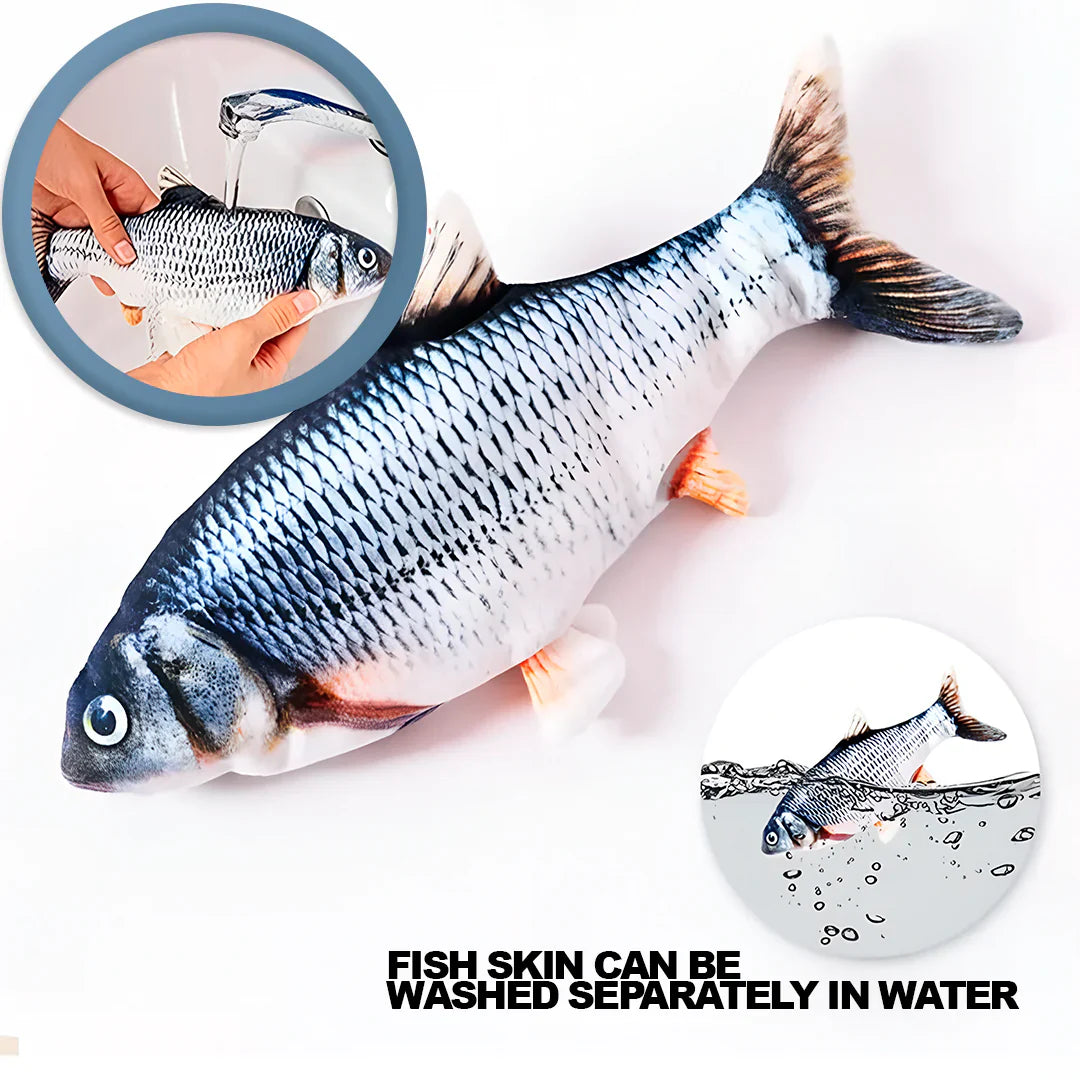 Are you trying to find a fun way to keep your pets occupied while easing their fear about being alone? The ideal answer is our USB Rechargeable Flopping Fish Toy! This interactive toy, which is made to resemble the movements of a real fish, keeps your dogs entertained and reduces their stress levels when you're not around. Your pets will enjoy hours of relaxation and entertainment thanks to its special motion-sensor technology, which makes it flop enthusiastically when touched.