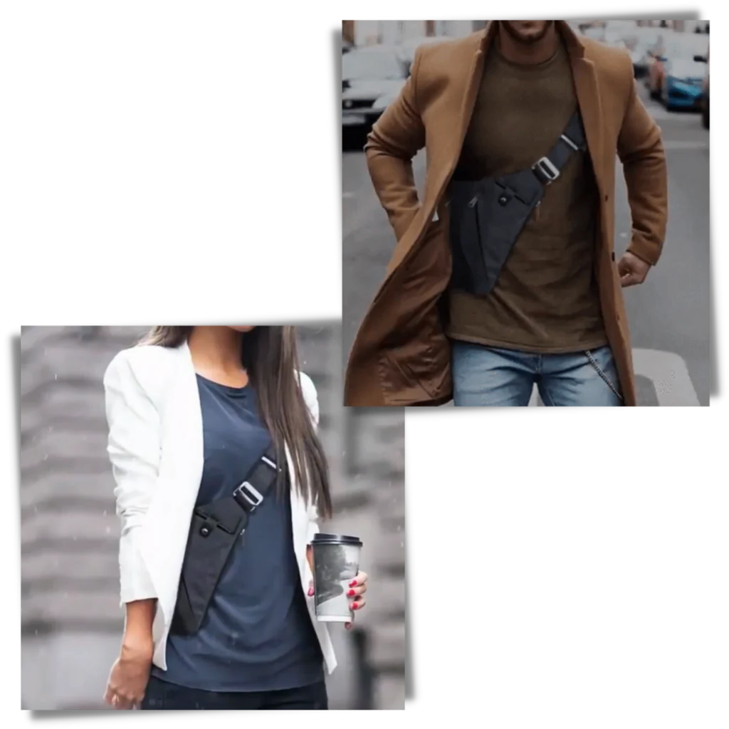 The pocket bag is appropriate for both men and women because of its universal design. It comes in two muted colors that go well with everything you wear. You have the option of a black or grey shoulder bag. Whether you're going shopping, traveling, to the gym, or perhaps on a romantic date with that particular someone, always have it with you. Because of its versatility and style, you'll always feel confident and appear stylish.