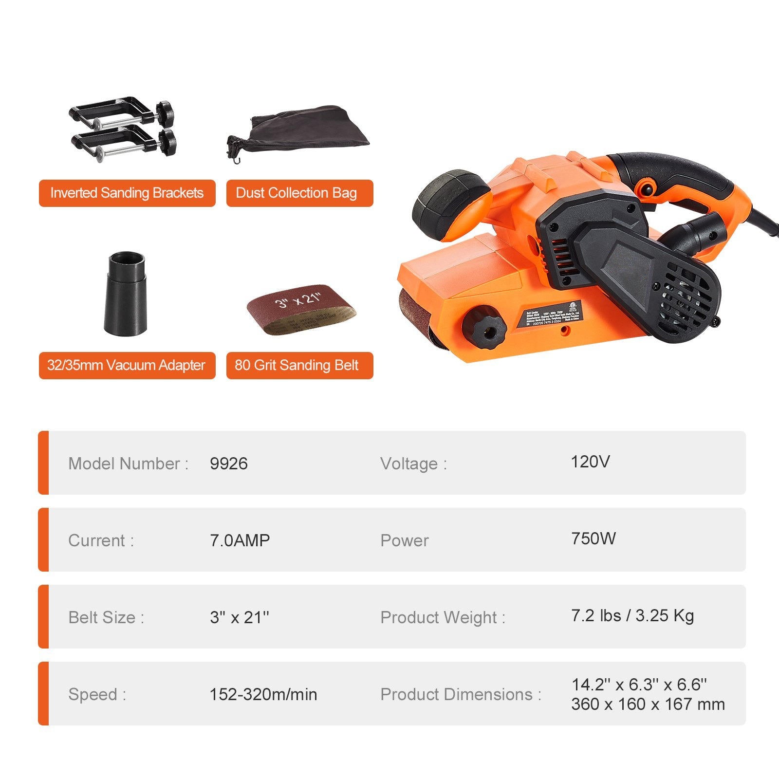 OPTIMIZED SANDING SURFACE: 3" x 21" belt with 80 grit tackles large areas while ensuring professional finish.